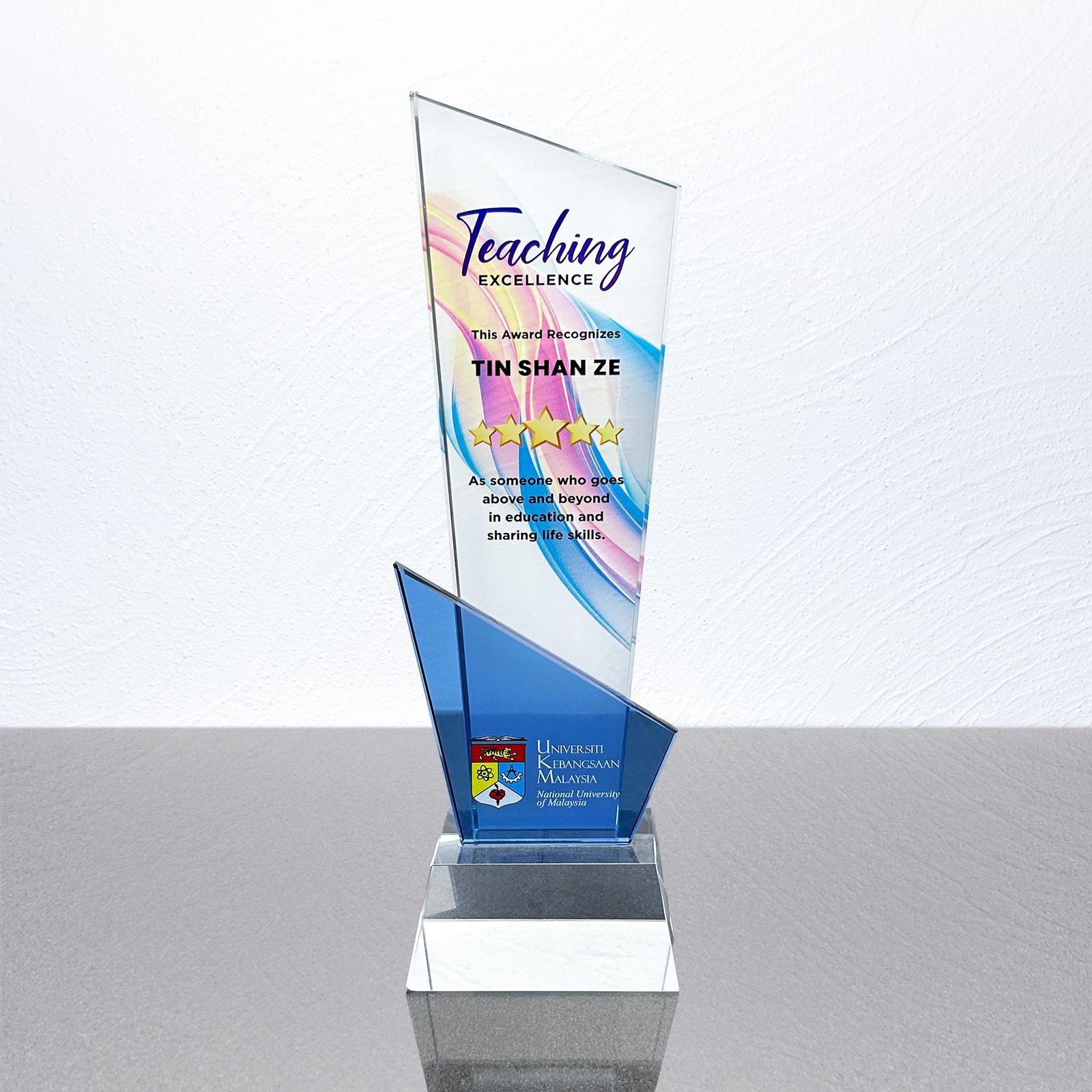This Crystal Trophy produced by the use of quality printing film that ensure everlasting printing effect.