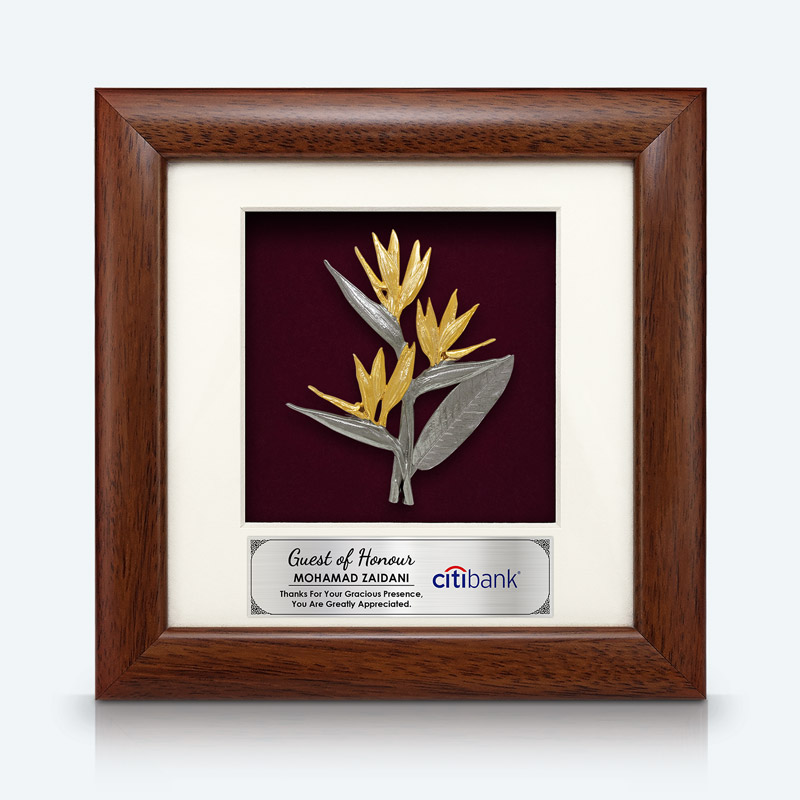 This Birds Of Paradise is crafted from fine Malaysian pewter with a luxurious gold-plated finish, showcasing refined craftsmanship and cultural elegance.